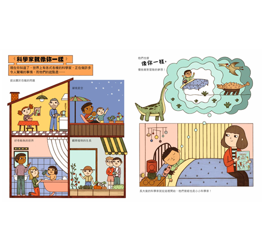 ★鼓勵孩子,做自己喜歡的事也能有所成就:孩子有很多天馬行空的想法,喜歡玩耍、玩電腦遊戲、堆積木、觀察昆蟲……本書從孩子感興趣的視角切入,開展科學家的各個工作面向,希望藉此鼓勵孩子:不論你想成為什麼樣的人、過什麼樣的人生,從自己喜歡的事出發,只要努力研究也能有所成就,甚至拯救世界。