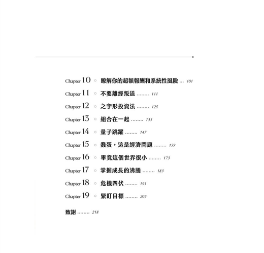 他在書中還煞費苦心地討論:追求卓越報酬的同時該如何降低風險,並針對大家經常談論卻常遭到誤解的術語「系統性風險」(beta)和「超額報酬」(alpha),進行一段令人大開眼界的探討。