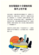 ● 不要在辦公桌前吃午餐。這個世界上有很多小確幸,午休就是其中之一。