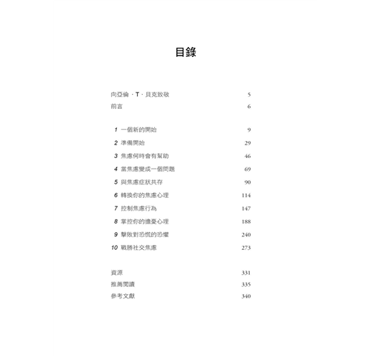 無論令你感到焦慮和擔憂的問題是最近才發生,還是已經持續了數年之久,你都可以在本書中找到逐步的指引,帶領你使用認知行為治療的方法減輕你的情緒困擾負擔。認知行為治療是亞倫.T.貝克醫生(第二作者)所開創的一種科學支持的療法,能夠有效減少各種焦慮問題,而《每個人都想學的焦慮課》是根據我們為數百人提供認知行為治療所得到的集體研究和臨床經驗。你將在本書中發現多種練習和工作單,內容是基於認知行為治療的基本原則,提出針對焦慮和憂慮最有效和創新的治療策略。