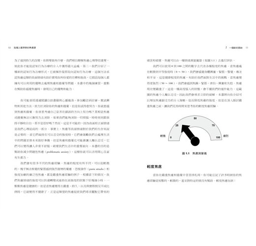我們每個人幾乎每天都會經歷一些輕度的焦慮或憂慮,通常短暫且處在合理可忍受或管理的範圍內。即使你曾經歷過多次嚴重焦慮,也可能像其他人一樣能輕易處理這些小事件。事實上,你可能會利用輕度焦慮,讓自己脫離過於放鬆和自信的狀態,更好地應對實際情況。你是否還記得自己曾經忍受過輕度焦慮,並利用它來發揮你的優勢呢?在本書中,我們將向你展示如何將輕度焦慮的情況應用到更嚴重的焦慮情況中。