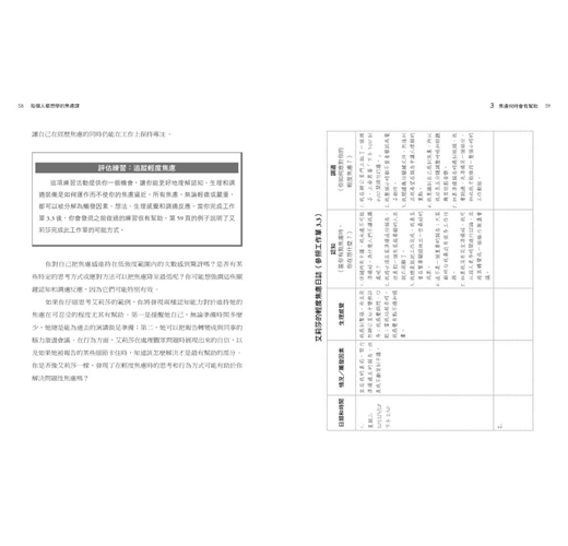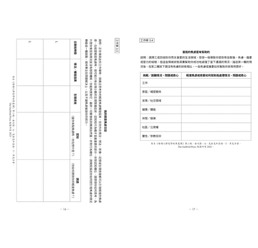本書中的許多練習形式、日記和評分表,你將透過這些由專業醫師設計的練習、表格與自己對話,進一步了解: