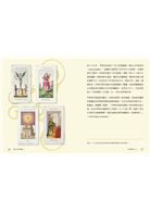 專業解說維斯康提塔羅的歷史源流以及思想演變,還比較了來自其他類型的牌組卡片;詳細解讀主牌繪面,包括場景、服飾與意象分析,以及正向與反向代表的不同意義,副牌等其他牌面也做了精細的解釋,更提供了由淺入深的占卜與卡片排列(牌陣)方法,帶您一步一步踏入維斯康提塔羅瑰麗又神祕的世界。