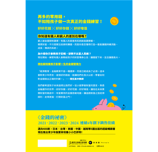 我們都希望孩子未來過得比我們好。從小就學會財富的語言,熟悉金融運作的世界,好好存錢、好好花錢、好好增值,讓他在未來累積財富的路途中,有套實用的金錢思維地圖,讓這趟致富之旅走得順利、走得更遠、打開財富之門。