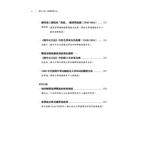 在歷史材料持續「出土」,數位化工具、AI工具盛行的現在,《蔣中正日記》、《蔣經國日記》的出版,具有是否什麼樣的意義,是否更能幫助我們解讀兩蔣執政時期的過往。透過十一位學者之筆,以兩蔣日記為軸心,輔以其他日記及檔案,不僅了解兩蔣對國事與家事的看法,和他們內心世界的幽微奧妙,也寫下民國歷史與故事,開啟新的篇章與無限可能。