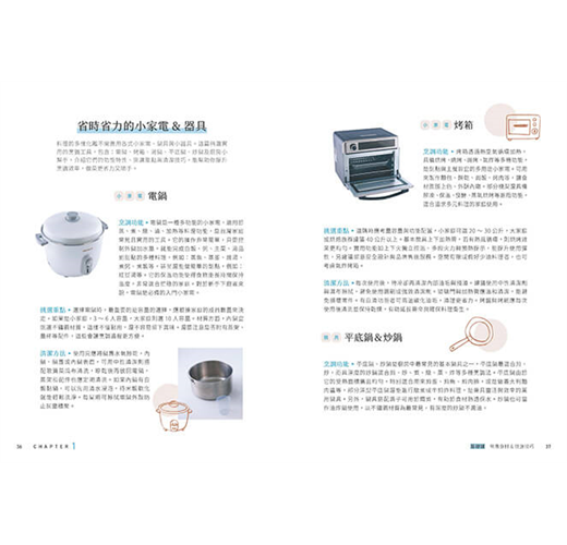 ➋ 善用6種鍋具家電:炒鍋、平底鍋、湯鍋、蒸籠、電鍋、烤箱。