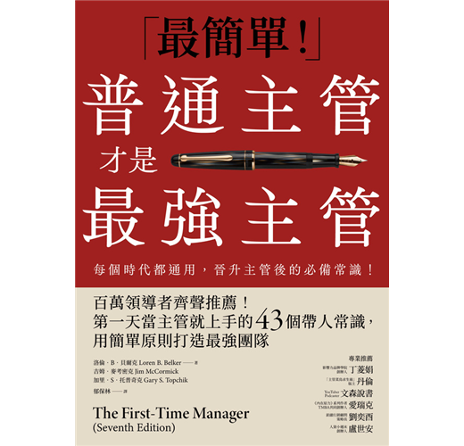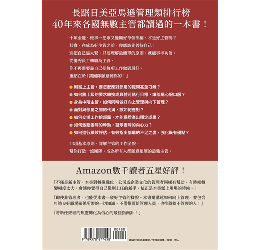 「本書既全面又實用,提供身為主管應有心態的指南,是在磨練主管技能之前應該先讀過的好書。本書讓我明白該做的事,放鬆緊張心情,甚至開始期待做好管理。能在剛當上主管時遇見這本書,真是太好了。」