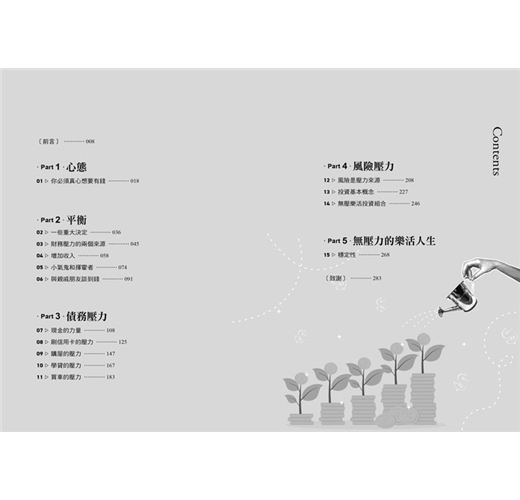 大多數人認為,解決財務壓力的解藥就是有更多的錢,不過事實並非如此。沒有財務壓力的人生,取決於你如何安排財務以及你對金錢的態度,這就是本書要討論的兩個議題。