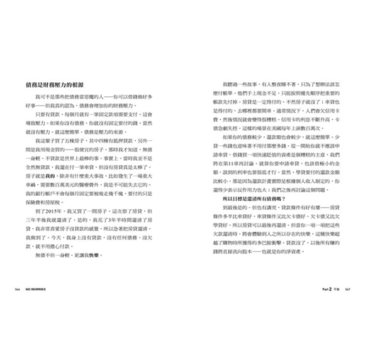 重要的是解決那些不必要的財務壓力。就像越欠越多的信用卡債務、讓你深陷泥淖的學生貸款;或是買了三倍槓桿的ETF、買了太大的房子或買車;又或者過得太省、太摳。是的,錙銖必較,事事節儉,反而會增加你的財務壓力,因為你的腦袋一直在乎錢。本書的目標是帶你走到不再擔心錢的境地——這聽起來像是無法實現的願望,但這就是我的目標。