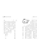 「來了。」小莎回答,廁所傳來馬桶的沖水聲。然後,小莎扯著一條髒兮兮的枕頭套下樓。枕頭套塞得鼓鼓的、表面凹凸不平,無聲的顛簸著下樓梯。裡面裝的就是小小五姊妹花:小雨、小露、小雪、小香,還有小檬。其實,她們不過是五隻看起來一模一樣的淡黃色絨毛鯨魚玩偶。她們都有湛藍的鈕扣眼睛,頭頂的噴水孔則有幾根閃亮潔白的毛線。