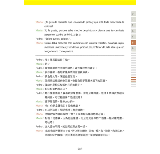 本書4大特色:1. 西中雙語編排:以西文和中文並列呈現,同時理解語言內容與文化背景,深入學習!