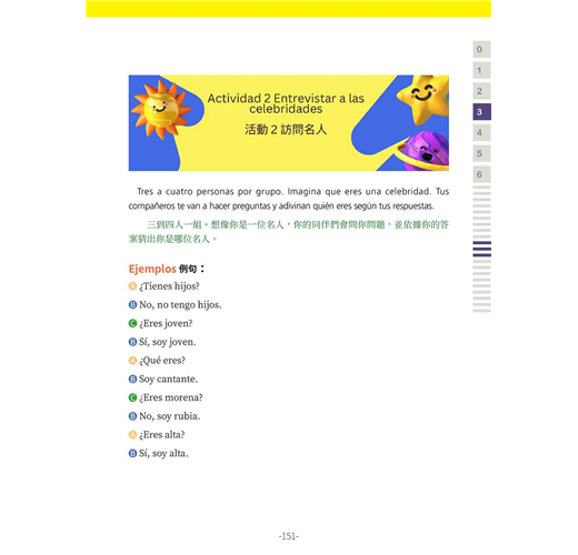 學習語言不能只是聽、讀、寫,更要敢於開口說!口說練習活動讓你在輕鬆、有趣的環境下運用所學,更自然地掌握西班牙語。