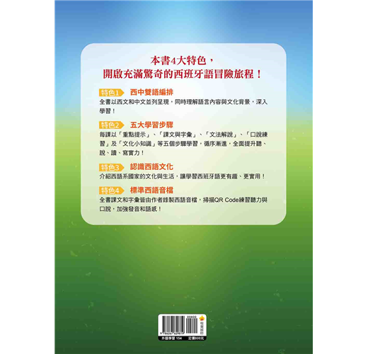 4. 標準西語音檔:全書課文和字彙皆由作者錄製西語音檔,掃描QR Code練習聽力與口說,加強發音與語感!