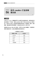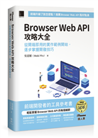 本書收錄的 Browser Web API,涵蓋地理定位、語音輸入輸出、背景計算、離線資料庫、動畫與性能監測等多元領域。透過範例程式碼、實戰情境與效能調校,讀者可快速將功能落地至專案,同時學會權限、安全與跨瀏覽器相容要點。書中也設計了「一分鐘概覽」與「踩雷區(Tips)」欄位,讓你在零碎時間也能迅速掌握精華,遠離常見陷阱。書中也幫大家整理所有的 Browser Web API(包含正式發佈與實驗中版本),幫助各位快速了解它們的特色,並能定位所需的工具。