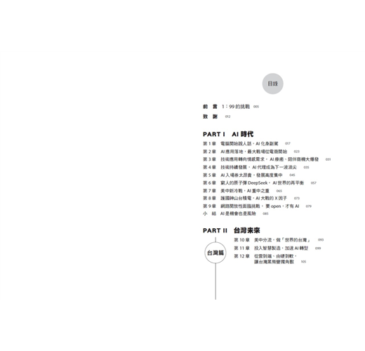 這是一本專為台灣量身打造的AI生存指南,幫助你全面掌握AI變革的脈絡,找到國家、企業與個人在變局中的成長之道。