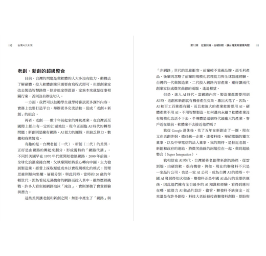 不同於一般歐美為主的AI書籍,本書緊密結合了台灣在地脈絡,以及台灣在美中科技戰中的戰略地位,強調台灣企業的組織特性、數位轉型困境。這種深度結合在地優勢與困境的分析,讓本書的解決方案更貼近台灣實際情況。