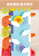 • 軌道迷宮:彩色軌道讓滾球一路翻滾下滑,訓練視覺追蹤與觀察力。