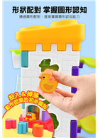 • 形狀配對:將不同形狀造型積木投入對應洞口,培養形狀認知與分類能力。