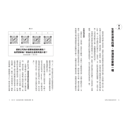 A:給每一個可能有東西要「賣」的工作者。要賣的可能是你們公司的商品或服務,可能是你們機構的理念與募款項目,也可能是你們單位的新政策或形象,甚至是你手上的明星或政黨候選人。只要有東西要賣,就要知道到底要「賣什麼」,就需要規畫你的策略。如果你已經是資深人員或老闆,這本書能強化你的策略思維與操盤技巧,讓你帶領的業務更有機會殺出重圍;如果你的資歷尚淺,那更好,我相信這本書能讓你具備比別人更清晰的市場觀與策略觀,幫助你更快向上爬。
