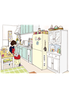 ◎用多彩的配色,描述廚房裡的各種細節,就連瓶罐碗盆邊和各式家具配置,每一幕都在刺激我開始想,下班後要煮什麼。