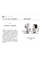《PEANUTS》的角色們,並不是什麼懷抱偉大目標的英雄,他們的日常生活也並非高潮起伏、劇力萬鈞,只是天天做些稀鬆平常、再自然不過的事情。在平凡的每日生活中,儘管偶爾會一針見血地彼此吐嘈,他們還是互相尊重、和睦相處。人與人、人與自然都是「Jinen」,希望這本書能助你領悟「自然法爾」,了解這點,一定會對你的生活有所幫助。誠心希望你有個美好的一天。