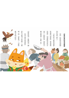 小狐仙和小雞邊走邊看:蔬菜攤上菜新鮮,賣菜婆婆有精神;水果攤的草莓來自遠方,鮮豔欲滴;賣雞的大嬸手腳俐落,喀擦一聲,公雞飛起來,雞攤亂成一團。