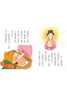 這個床母娘,全身沐浴金光,她輕輕一點,累壞了的媽媽睡著了。她抱起娃,輕聲安撫,娃的哭聲立刻小了,慢慢的進入夢鄉,只是哭太久,滿臉紅通通,讓人看了好心疼。