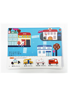 全套共有四冊:《城市趣味冒險》、《毛毛蟲消失了》、《超棒生日禮物》、《動物園有怪獸》。只要將「勾面」魔鬼氈貼在頁面圓點處;拆下紙卡,將「絨面」魔鬼氈貼在中間;並依據頁面上的紙卡輪廓,將所有紙卡黏貼,就可以開始遊戲。