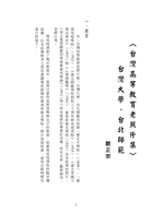 本〈台灣高等教育老照片集〉台灣大學、台北師範共收錄《臺北師範學校創校三十周年新命寫真帖》(1925)、《臺北帝國大學沿革史》(1935)與《心理與醫學》(1945)等二所高等學校畢業紀念冊、校史沿革、醫學期刊、老照片等。