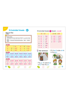 R-Controlled Vowels》為自然發音拼讀系列第六冊。R-Controlled Vowels 是以受 R 控制的母音為主軸,當母音 a、e、i、o、u 後面接上子音 r 時,子音 r 會影響母音的發音,如: ar、er、ir、or、ur 等音組。這些音組也會有長音〔ɝ〕