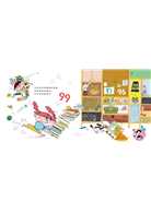 畫面非常吸引人,且不只是描繪孩子忙碌收拾的樣子,右下角還用小圖呈現媽媽正在回家的即時狀況,細節處理非常用心。最後還有整理方法的教學,這點很棒!──al*******