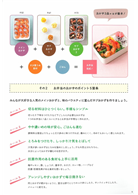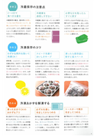 在有時間的週末或休假,先大量做出各種主菜和配菜,再將做好的主菜和配菜依照便當的尺寸分成小份後,放進保存容器或保存袋中,最後用冷藏或冷凍的方式保存。除了可以直接當作便當菜之外,還可以當作平常的早餐、晚餐或者是下酒菜。如果以冷凍的方式,大約可以保存2〜4週,所以就算忙碌的話,也只要找一天先將整個月需要的菜色做好放進冰箱冷凍。