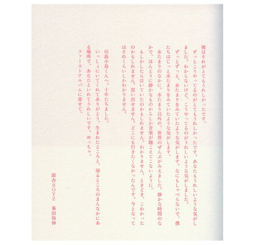 以完美捕捉兼具野性與靈性的可愛女童日常模樣的『未來CHAN』跟耗費三年在台灣各地拍攝日常風光的『明星』等攝影集,在日台兩地都擁有廣大粉絲的知名攝影師川島小鳥,曾經從2007年開始在長達十年的期間內,持續替由主唱峯田和伸為中心的日本知名個性派地下龐克搖滾樂團『銀杏BOYZ』擔任其眾多音樂作品的封面拍攝。這一系列的照片往往以少女的姿態為攝影的主題,並且配合音樂想要傳達的意涵、採取朦朧的意象表現手法來進行詮釋,頗有如夢似幻的意境。本誌便是將這十年間所拍攝、最終並未受採用而不曾公開的2000多張照片重新擷選後首度集結成冊,誌中並收錄有峯田和伸的寄贈文稿,藉此記錄川島小鳥與銀杏BOYZ在這十年的歲月之中所共同編織出的愛與夢想。