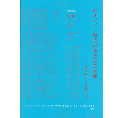 談起大和民族,拘謹壓抑、保持距離經常會是第一個出現在腦海中的刻板印象,然而與此同時,他們自古以來就相當興盛的風俗產業、大膽解放的官能美學也往往令人印象深刻,究竟這兩種乍看之下近乎完全相反的概念為何會共存在日本社會?現代日本的情色文化又逐漸朝什麼方向去發展?便是本誌這次要來探討的主題。誌中邀請了京大、立命館等大學教授、小說家、雜誌編輯、醫學博士、寫真偶像AV導演等各界人士,就歷史、文學、網路社群甚至是VR系統與性愛娃娃等各種領域和角度,用各自不同的專業觀點,去針對選擇性的日式性慾文化進行各式各樣的探討。誌中並刊載了由知名攝影師川島小鳥掌鏡,在日本知名性愛博物館『熱海秘寶館』拍攝、不裸露也充滿官能感的知名女星吉岡里帆的寫真,帶領讀者一同深思這往往令人無法直視卻也不能忽略的文化領域。