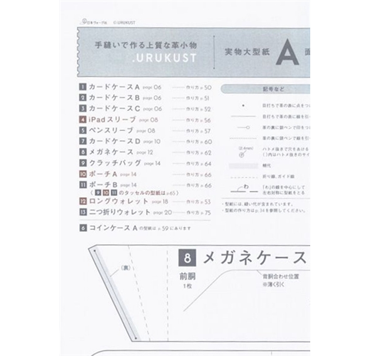 包含卡片匣、平板套、筆依、零錢包、眼鏡盒、長夾、短夾、收納包、肩背包、工具箱、托特包等24件簡約而時尚的皮件作品,附上型紙和詳細教學,提供大家一同來體驗。