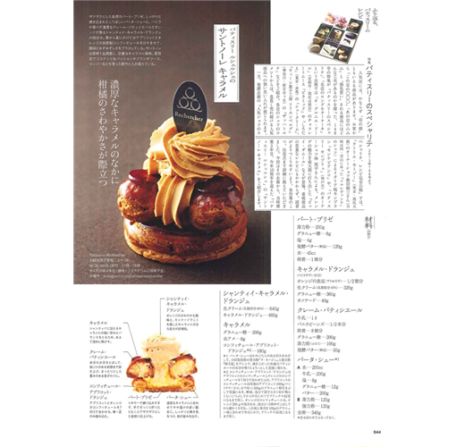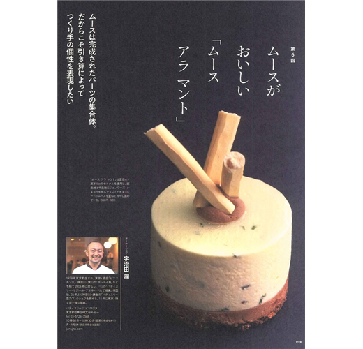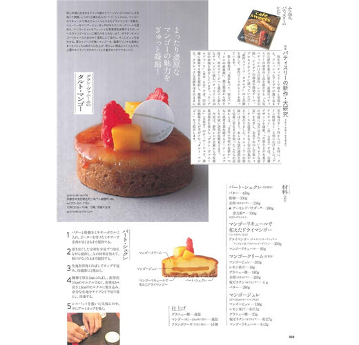 本期首先介紹AU BON VIEUX TEMPS、Un Petit Paquet、a tes souhaits!、LA VIEILLE FRANCE、Puissance、grains de vanille、-ACACIER-、Patisserie Rechercher、Parlour Laurel、Patisserie QUARTIER LATIN等知名甜點店的招牌甜點食譜及製作方式,並按照海綿蛋糕、慕斯、馬卡龍、水果塔、泡芙、巧克力等類別排列。接著是糖、麵粉、堅果、鮮奶油等甜點素材解析。新開幕的甜點店obeissant專訪以及其他多篇連載單元。