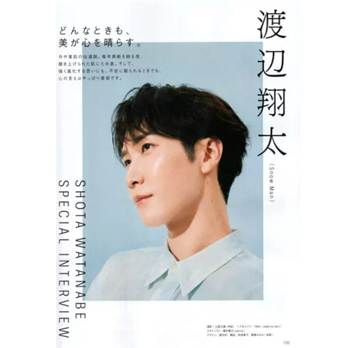 不但是知名的美容男子,實際上也擁有令人羨慕的光澤美肌,人氣偶像渡邊翔太(Snow Man)再度光臨美的。在最新的8頁專訪中,他透露了自己的美容近況,最新寫真也值得確認。