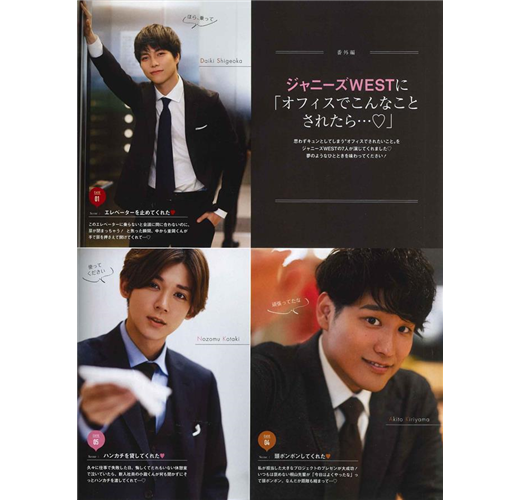 由7位關西小傑尼斯組成,現在歌唱戲劇領表現十分活躍的人氣偶像團體「Johnnys' WEST」,卸下明星光環,如果他們只是普通的上班族,是什麼樣子呢?卷末西裝男子妄想劇場由Johnnys' WEST化身公司職員,如果公司有這樣的同事,想必大家工作都要不專心了。